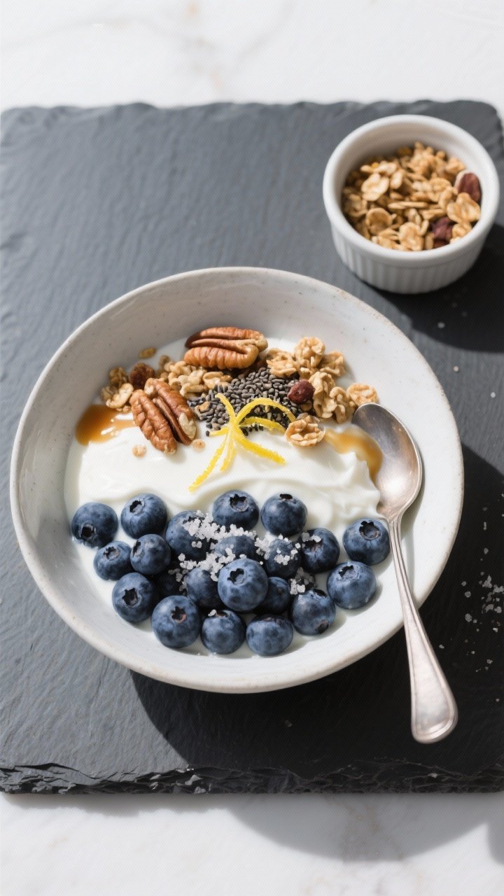 - Lemon Blueberry Cheesecake Bowl: Add 1–2 tablespoons of softened cream cheese to the yogurt, plus lemon zest and a bit of crushed graham cracker or vanilla granola.