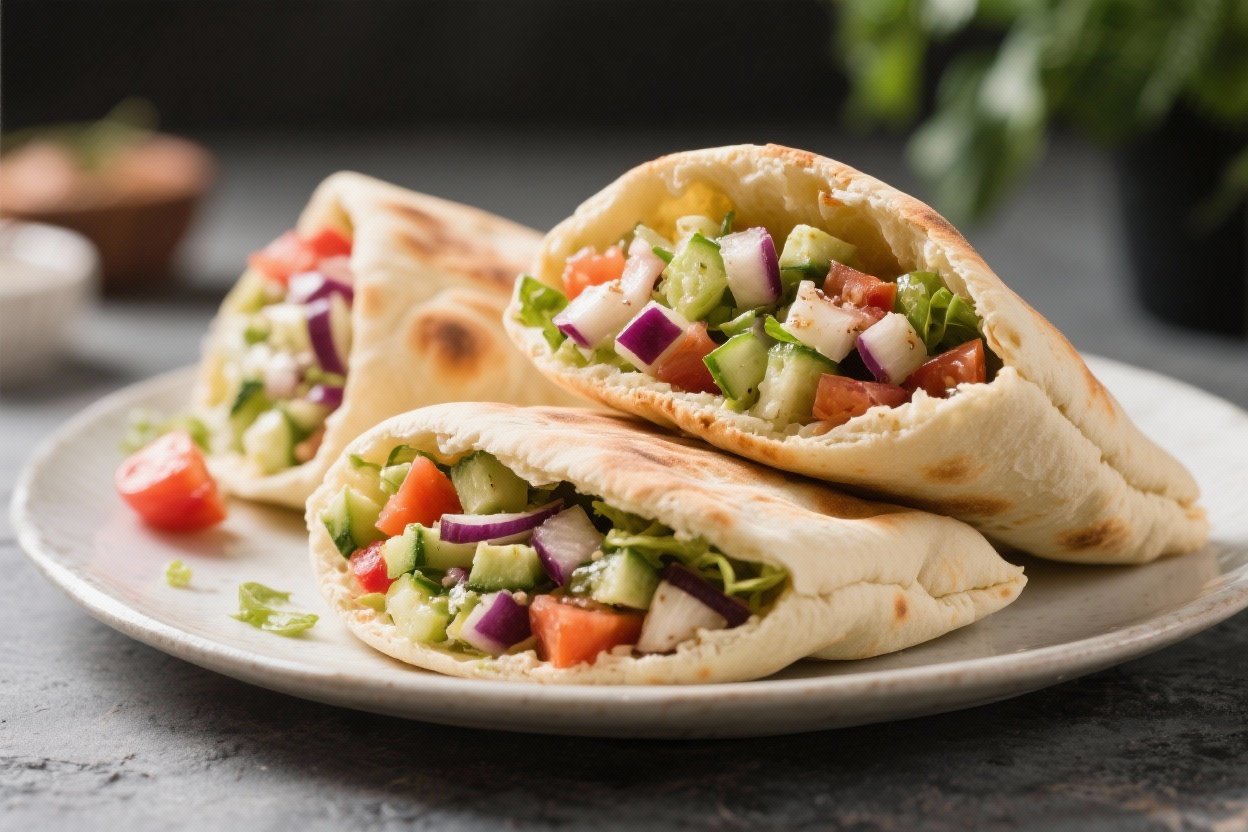 • Saucy variation: Spread tzatziki, hummus, or a swipe of tahini inside the pita before filling.