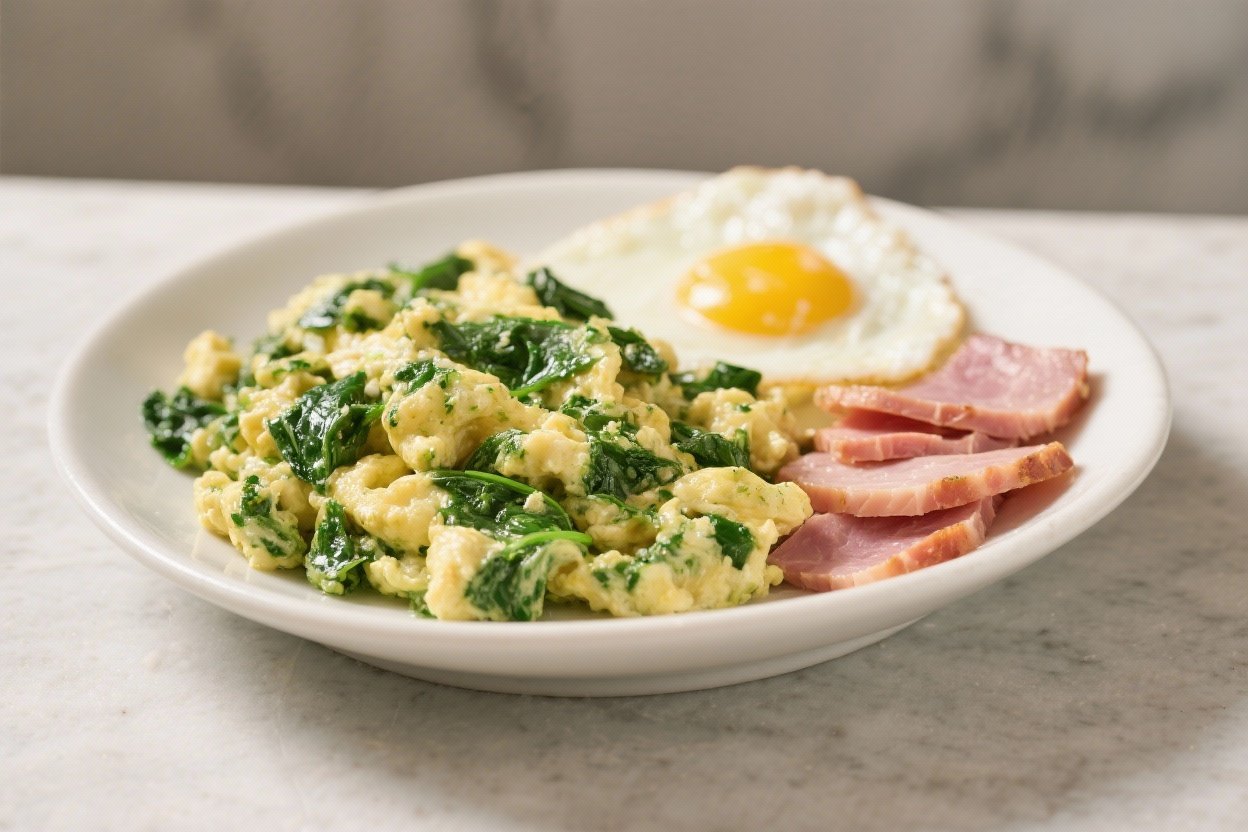 - Protein plus iron. Eggs and lean ham deliver high-quality protein, while spinach brings iron and folate to the party. Breakfast that actually fuels you? Yes.