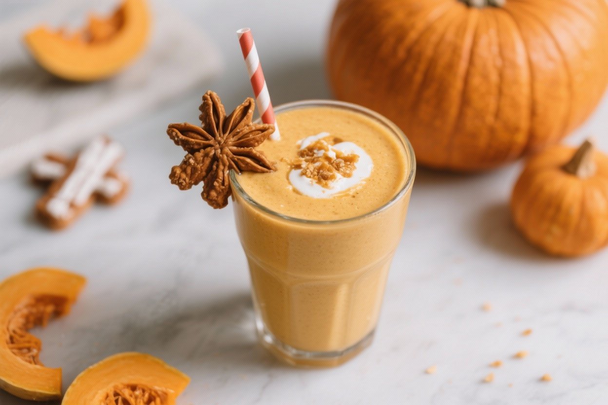 - Mocha Pumpkin: Add 1–2 teaspoons of instant espresso powder and a touch of cocoa. It’s like a fall latte in smoothie form.