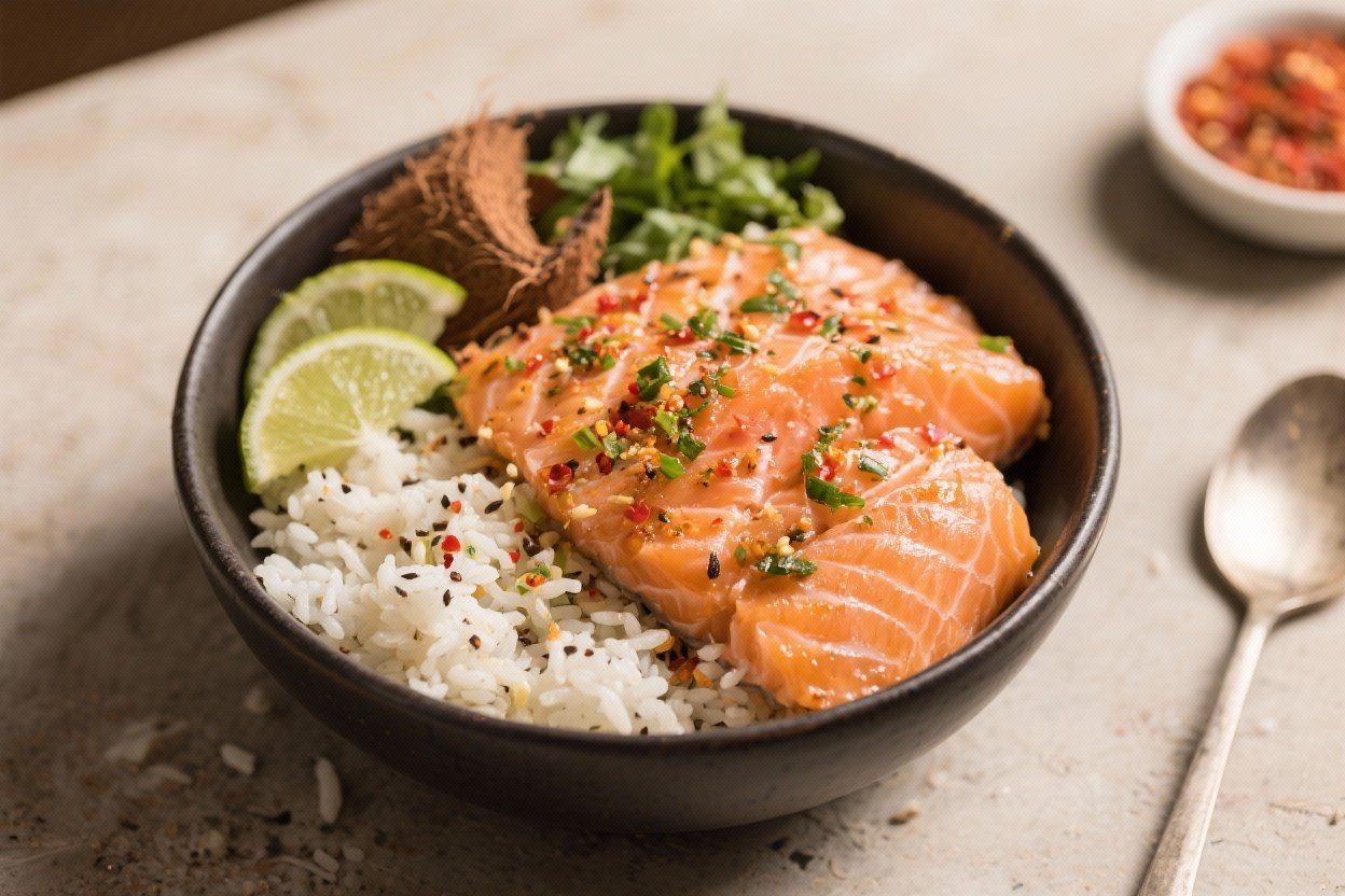 SPICY SALMON BOWLS WITH COCONUT RICE: The 20-Minute Power Lunch That Tastes Like a Vacation