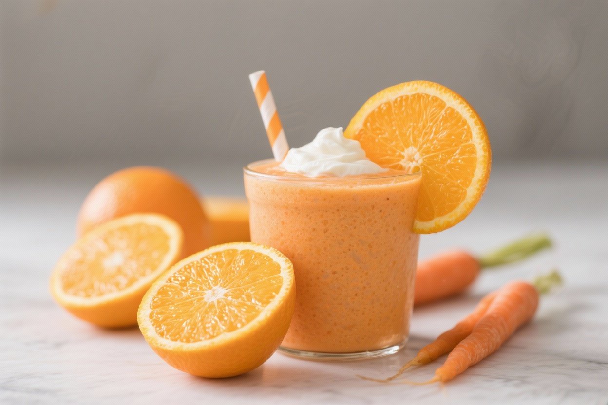 We use whole oranges for fiber and body, which smooths out the sugar spike while keeping that punchy citrus flavor. Greek yogurt brings legit protein and creaminess, so your smoothie isn’t just vibes—it’s fuel. And the hidden carrot? It melts into the blend for color and beta-carotene without hijacking the taste.