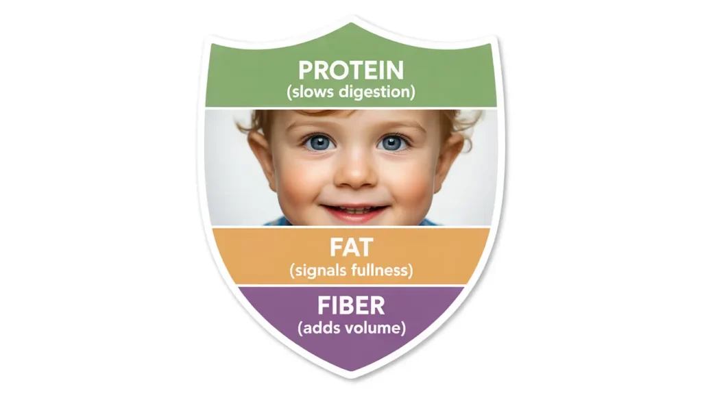 Fiber extends fullness by adding bulk, attracting water, and slowing nutrient absorption. A study of children ages 7-12 found chicory root fiber supplementation reduced appetite and improved body composition. dietary Toddlers ages 1-3 need 19 grams of fiber daily eatright according to the Academy of Nutrition and Dietetics, though the AAP offers a simpler formula: age plus five grams as a minimum target. Cleveland Clinic